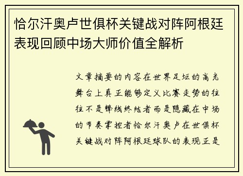本文将对法国球星安托万·格列兹曼在对阵多特蒙德的世俱杯比赛中的表现进行深度解析,探讨其在比赛中的关键价值与战术影响。格列兹曼的技术特点与战术适应性使他成为球队的重要组成部分,本场比赛也展现了他在压力下的成熟表现。文章将从四个方面入手,全面分析他的战术作用与对比赛结果的影响。这四个方面分别是:格列兹曼...